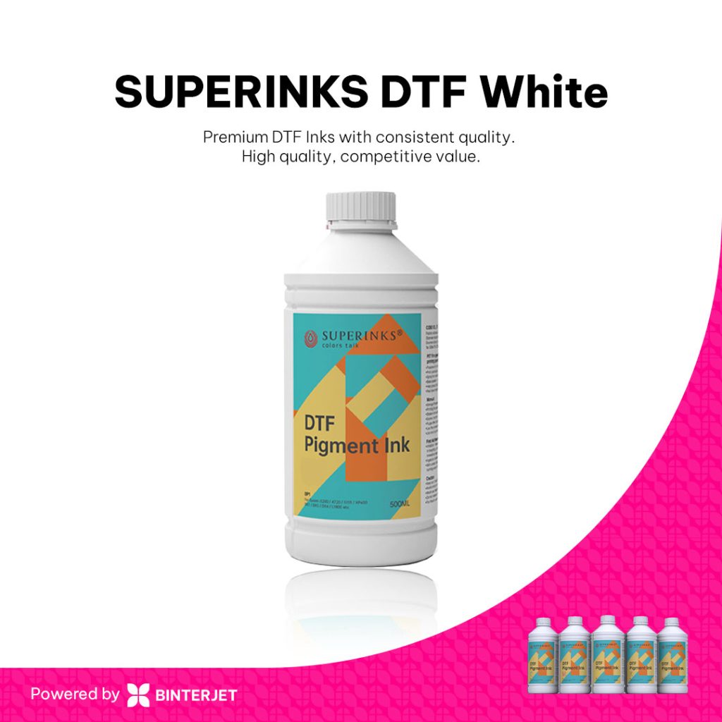 Dengan Superinks 0P61 DTF Pigment Ink, Anda mendapatkan tinta dengan performa premium, hasil cetak tajam dan kuat, serta kenyamanan maksimal untuk produksi apparel profesional dan kreatif.